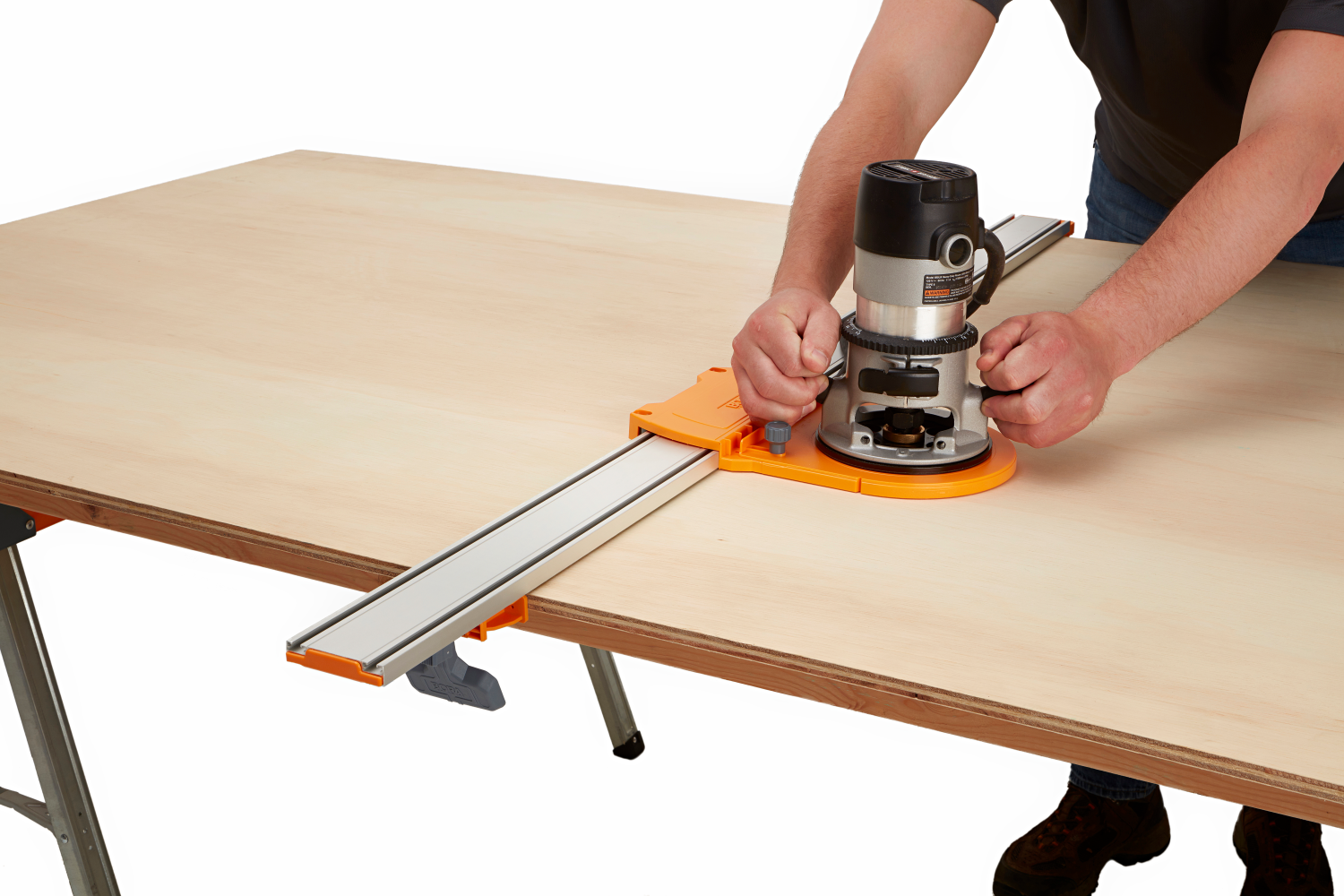 De freesgeleider past in de NGX klemgeleider voor kantenzagen om rechte groeven en andere freessnedes te garanderen