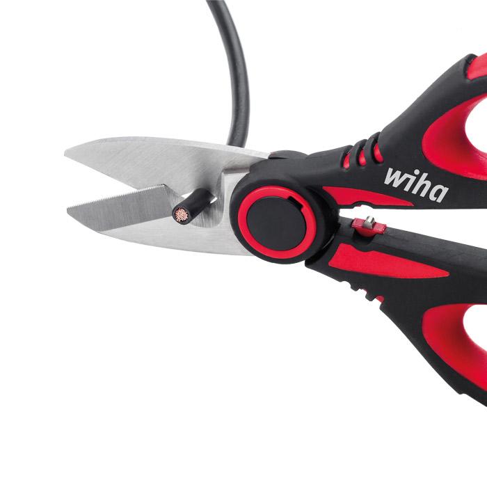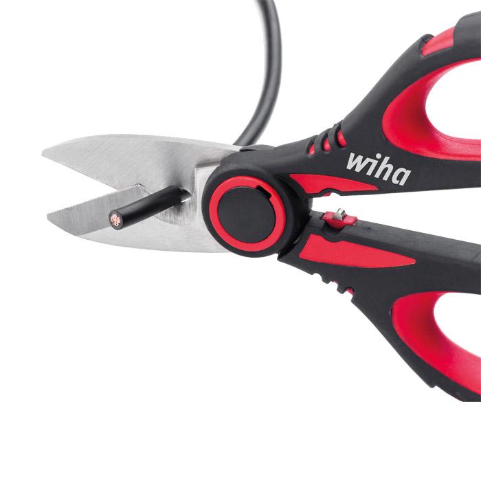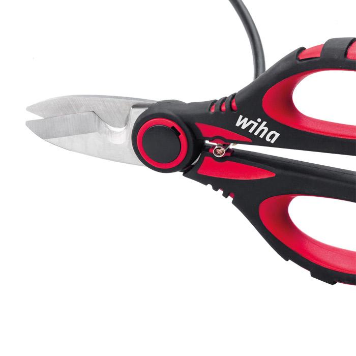 De elektricienschaar is de ideale begeleider voor de elektricien in het veld. De universele inzetbaarheid van de schaar wordt gestaafd door zijn vier functies: op maat maken, ontmantelen, strippen en krimpen. Dankzij de grote schachtinkeping en de fijne microvertanding kunnen kabels moeiteloos op maat worden gemaakt, zonder dat de kabel uit de schaar glijdt. Daarnaast kunnen kabels ook worden ontmanteld en gestript. De inkeping achter het scharnierpunt is bedoeld voor het eenvoudig krimpen van adereindhulzen tussen 1 en 5 mm². Voor gebruik onderweg kan de elektricienschaar dankzij het praktische etui met bevestigingsclip gemakkelijk aan de riem worden vastgemaakt.