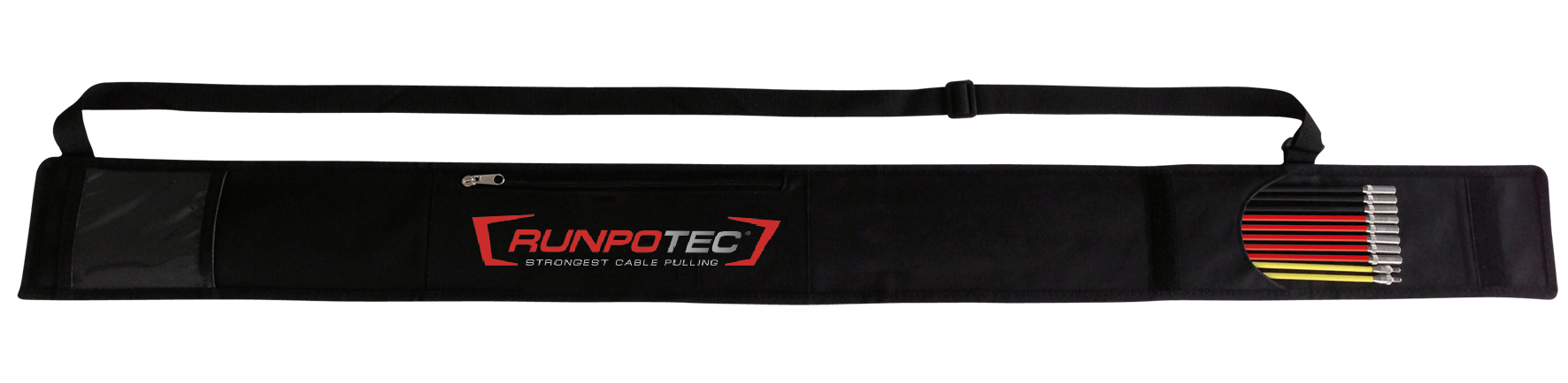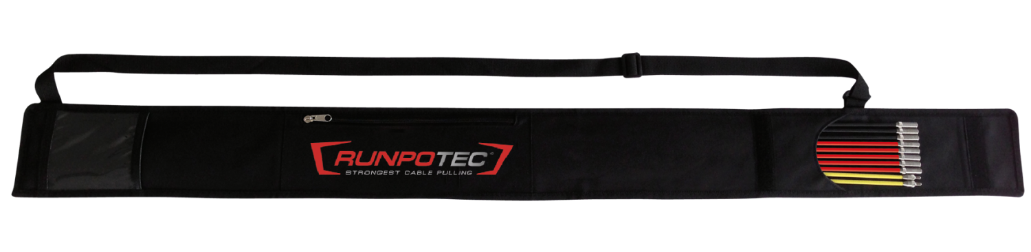 De Runposticks doorvoerstokken en alle accessoires berg je perfect op in de praktische opbergtas met draagriem en groot opbergvak.