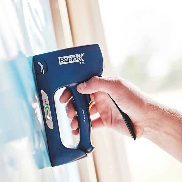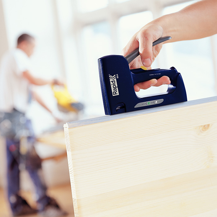 Tacker met hoge capaciteit, voor vlakdraadnieten en brads. Geschikt voor isolatiemateriaal, kunststof bekleding, karton, tapijt, profielen, naden, lijstwerk enzovoort. Inwendige slijtonderdelen zijn geheel van staal.