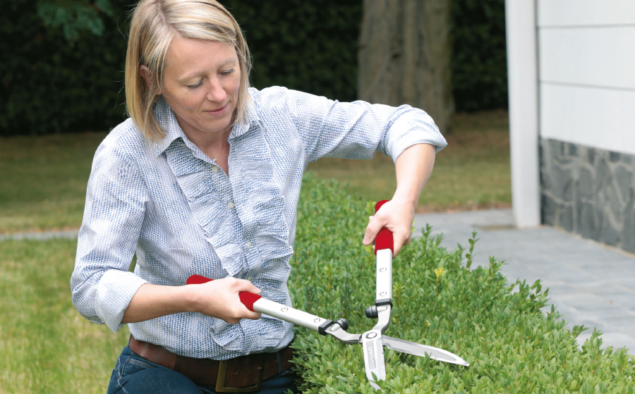 Ultralichte heggenschaar, ideaal om hagen, heide, lavendel en struiken te snoeien zonder grote fysieke inspanning