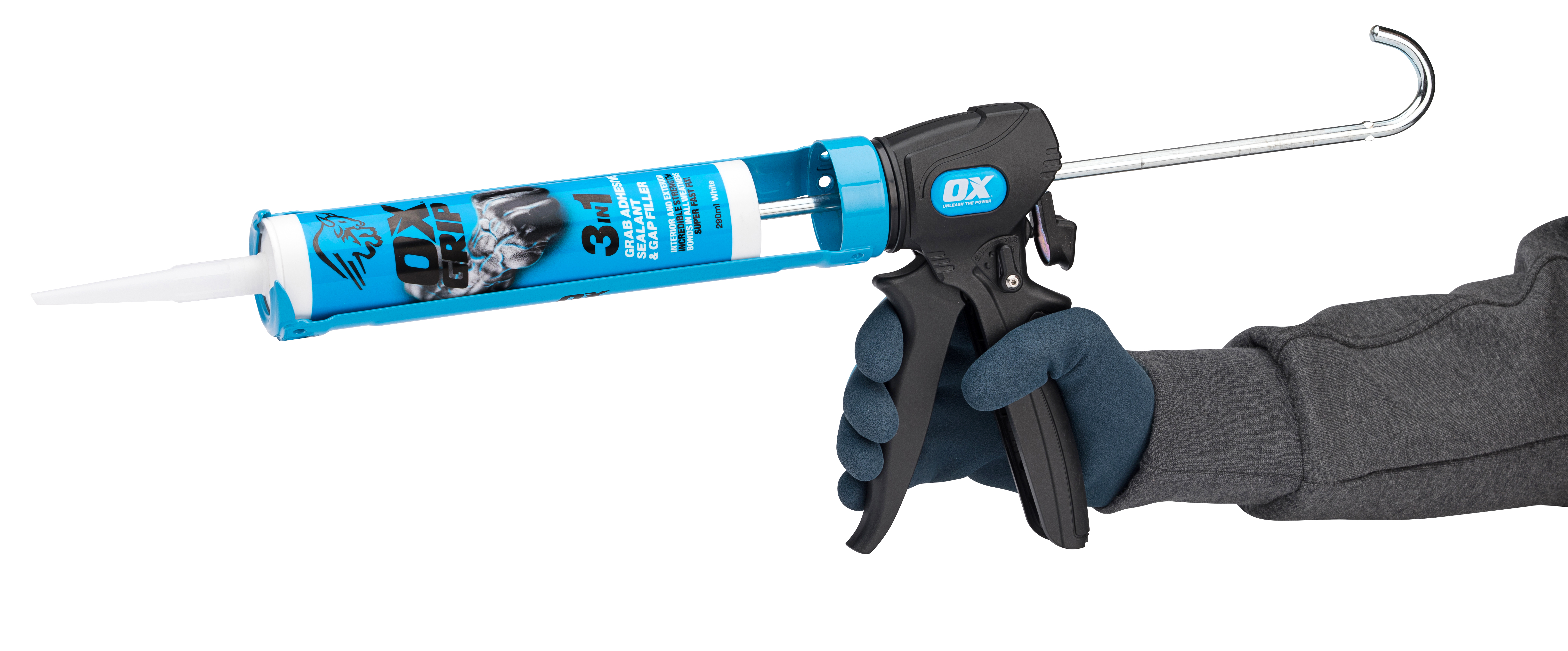 • Schakelbare verhouding (12:1/24:1) voor eenvoudig aanbrengen van alle viscositeiten lijmen en kitten