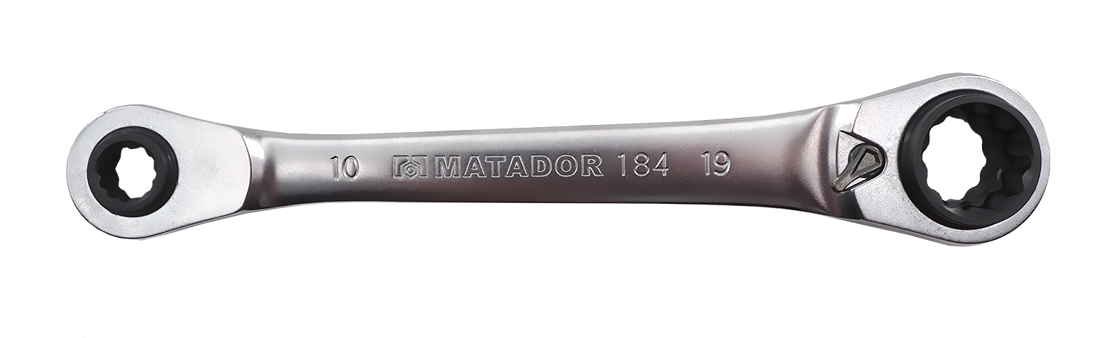"4 in 1" ringratelsleutel, 2 afmetingen per kant, dekt 70% van alle schroeftoepassingen