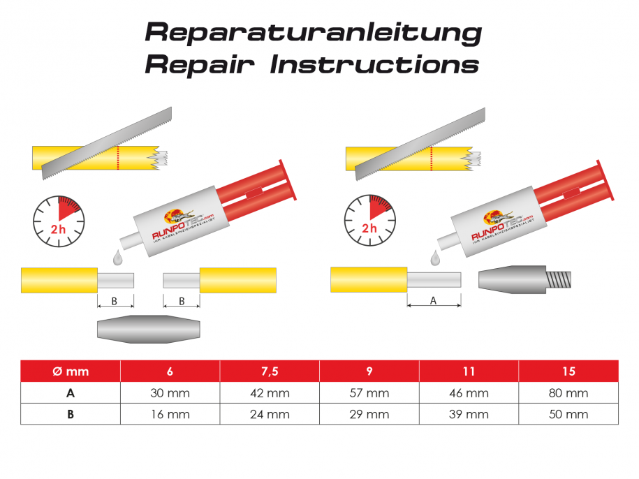 Voor het repareren van 6 mm, 7 mm, 11 mm en 15 mm glasvezelprofielen