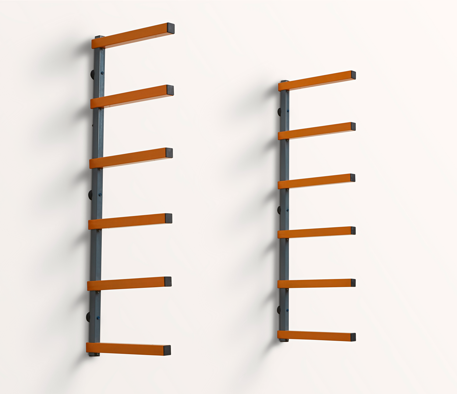 Dit 6-planken houtopslag rack is een veelzijdig rack-systeem dat veel opslagcapaciteit biedt voor hout, pijpen en andere lange voorwerpen.